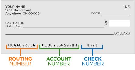 - You can find the routing number and account number here: