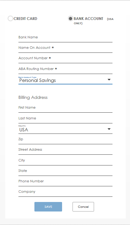 Select the Bank Account (USA Only) option.- In the Bank Name field, type the banking institute associated with the client’s account.