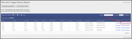 - If an item on the report was invoiced by mistake, remove it from the plan’s usage history. This action will remove the unmatched item from the Unaddressed and Unmatched Item Usage report as well.