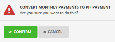 - Select Convert Monthly Payments to PIF Payment.